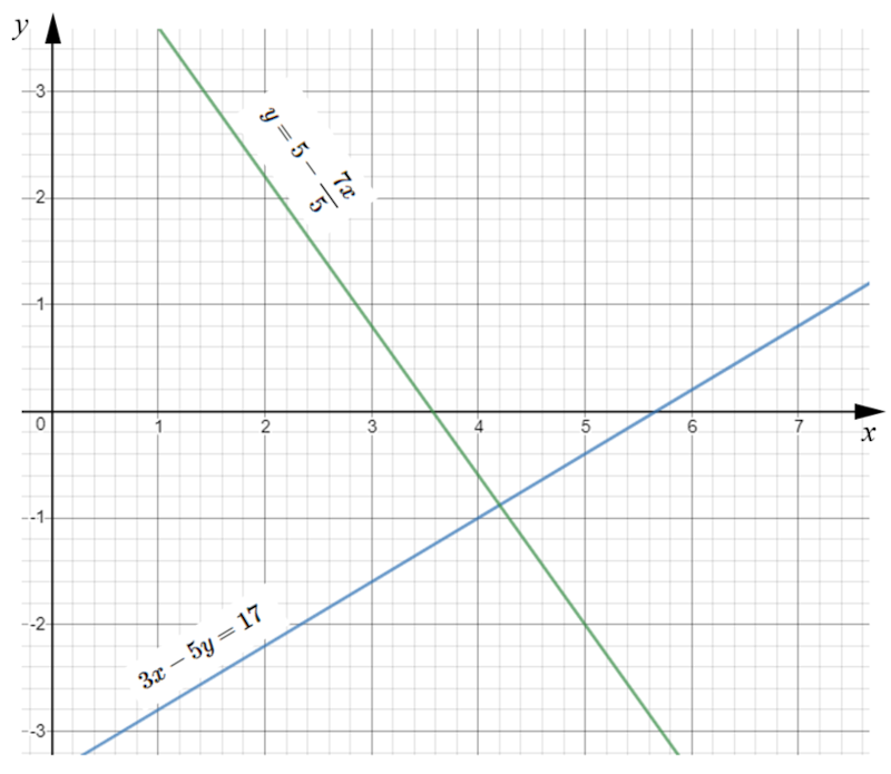 $$3x-5y=17$$ $$y=5-\frac{7x}{5}$$