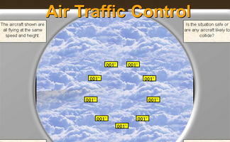 Work out which aircraft are in danger of colliding from their positions and direction of travel. An exercise in understanding bearings.