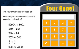 An activity involving a broken calculator which is missing the four button. Can you evaluate the given expressions without using the four?